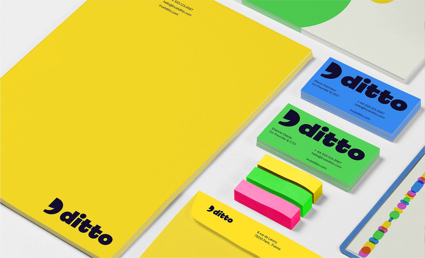 Ditto by Goodside — Ditto 是一个气候科技 B2B 平台,致力于帮助企业应对日益复杂的可持续发展合规要求。在视觉设计上,Ditto 的品牌形象充满喜悦感和简洁性。标志采用微笑的设计,配合充满活力的彩虹色调,打破了 B2B SaaS 品牌通常保守的刻板印象。