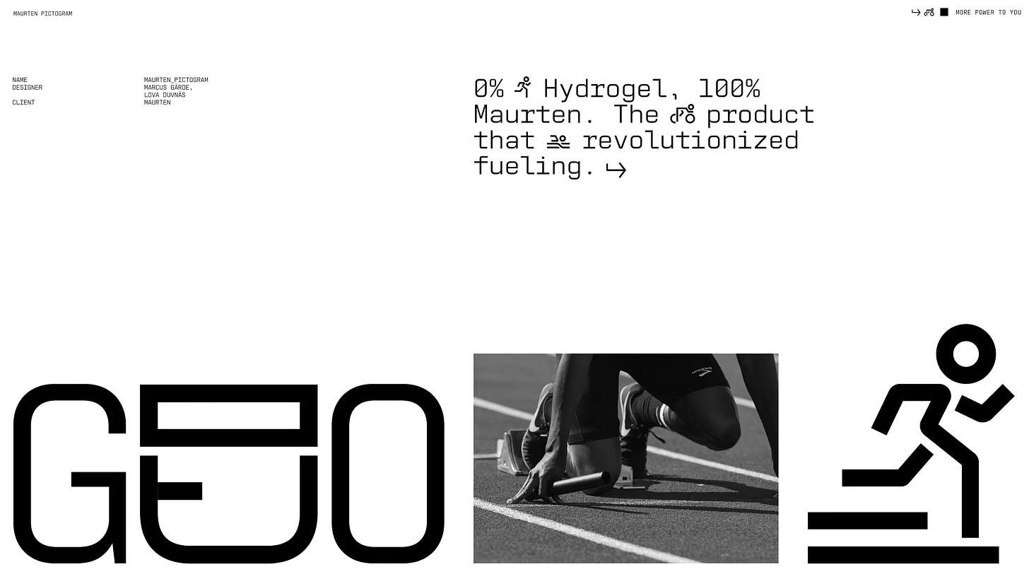 Maurten Pictograms by Gärde Design — 瑞典运动营养品牌 Maurten 的新图标系统由 Gärde Design 操刀,以品牌定制等宽字体 Maurten Mono 的几何逻辑为基础,打造了一套与排版无缝融合的象形符号。整体延续品牌技术极简的美学基调,对跑者与自行车手等运动符号进行精细推敲,在姿态、速度与距离的微妙变化中确保不同运动项目的可识别性。